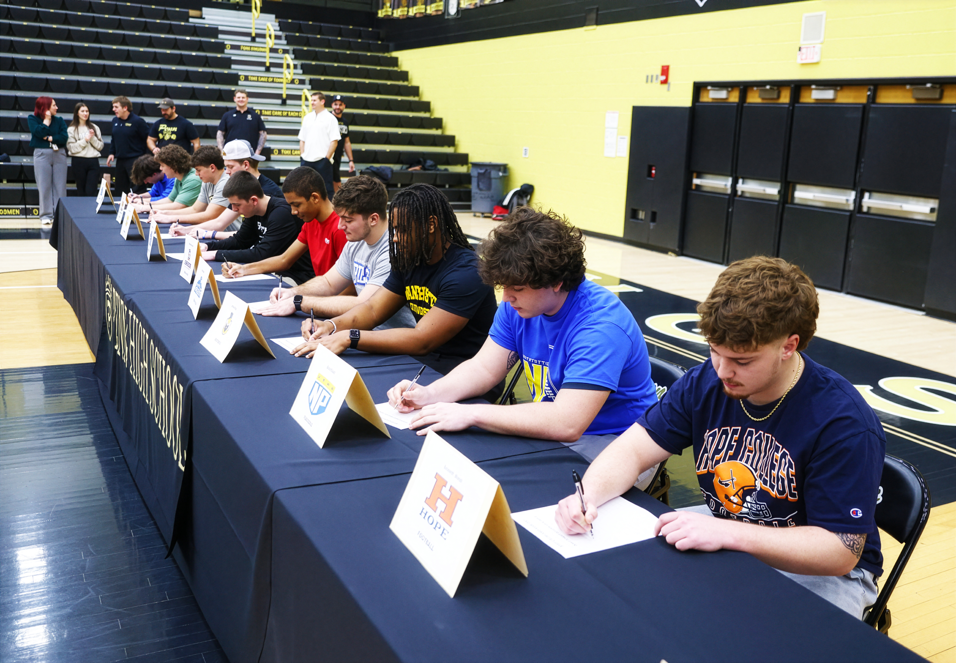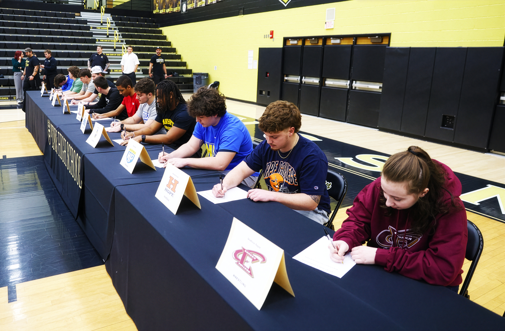 Penn High School celebrated 12 student-athletes who committed to continue their athletic careers at the collegiate level.